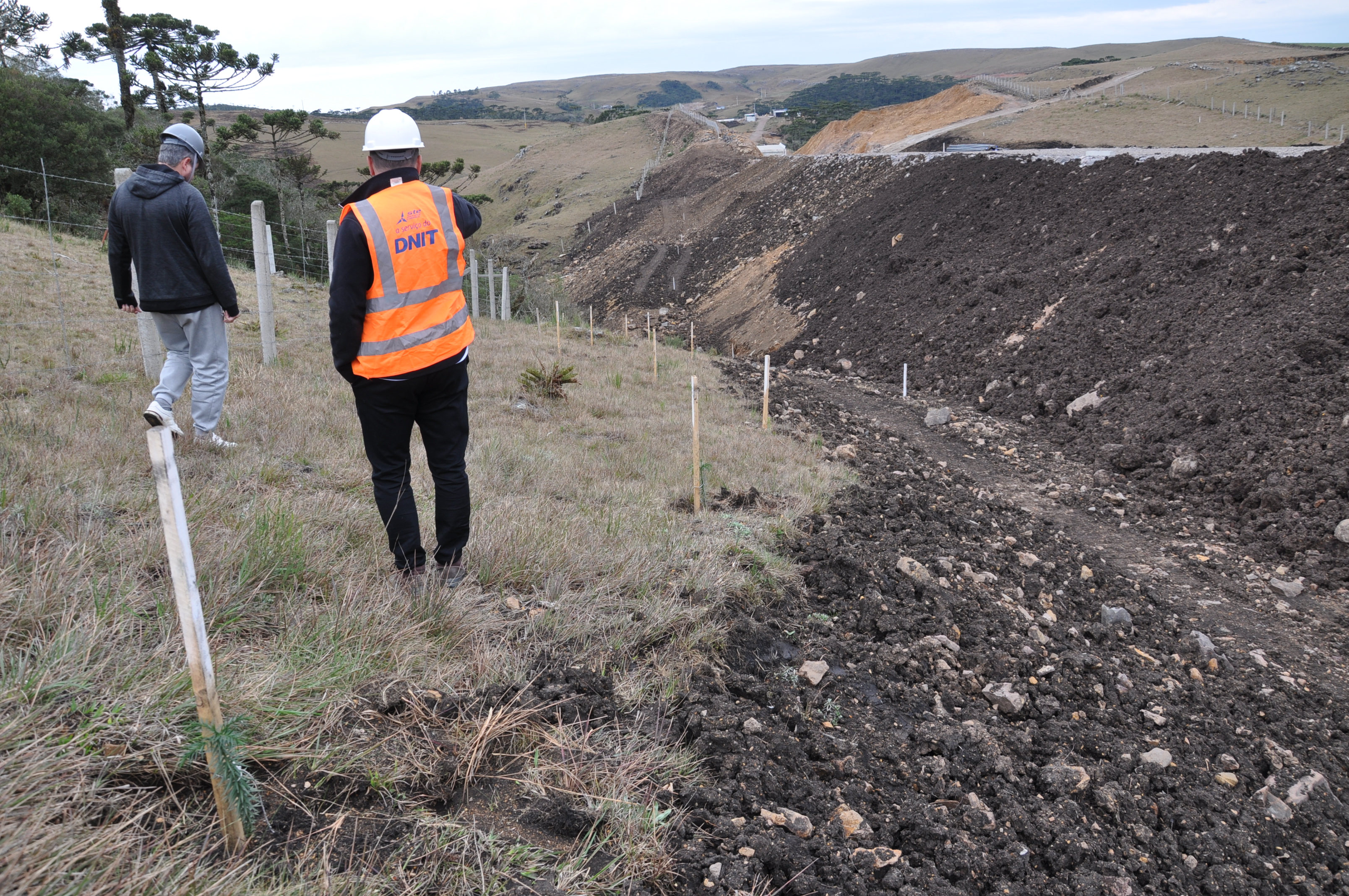 As obras de implantação e pavimentação da BR-285/RS/SC, no trecho de São José dos Ausentes (RS), ganharam mais uma ação voltada à conservação da biodiversidade. O Departamento Nacional de Infraestrutura de Transportes (DNIT), por meio do Consórcio Construtor do Lote 1, realizou o plantio de mais de 30 mudas de espécies arbóreas próximas às alas de duas passagens de fauna subterrâneas já concluídas e com o terreno em conformação final. O objetivo é formar um corredor ecológico que aumente a conectividade com a mata ciliar existente no curso hídrico, servindo de abrigo e rota segura para os animais.
